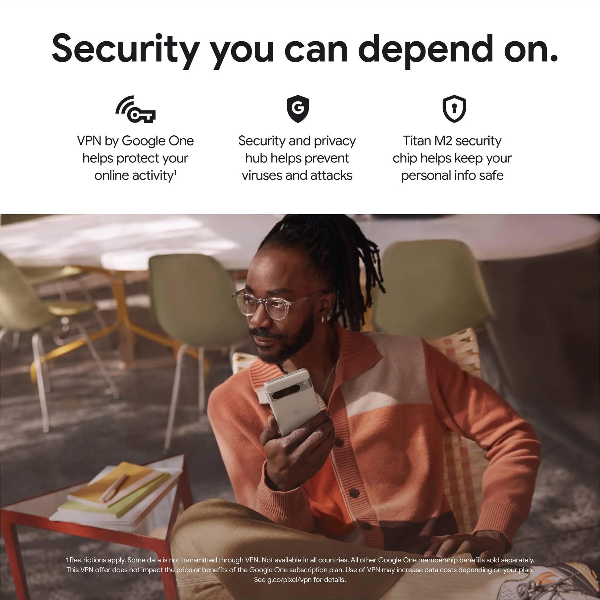 To protect you and your sensitive data, Pixel comes with 7 years of security updates from launch.15 So your Pixel gets even more secure over time.