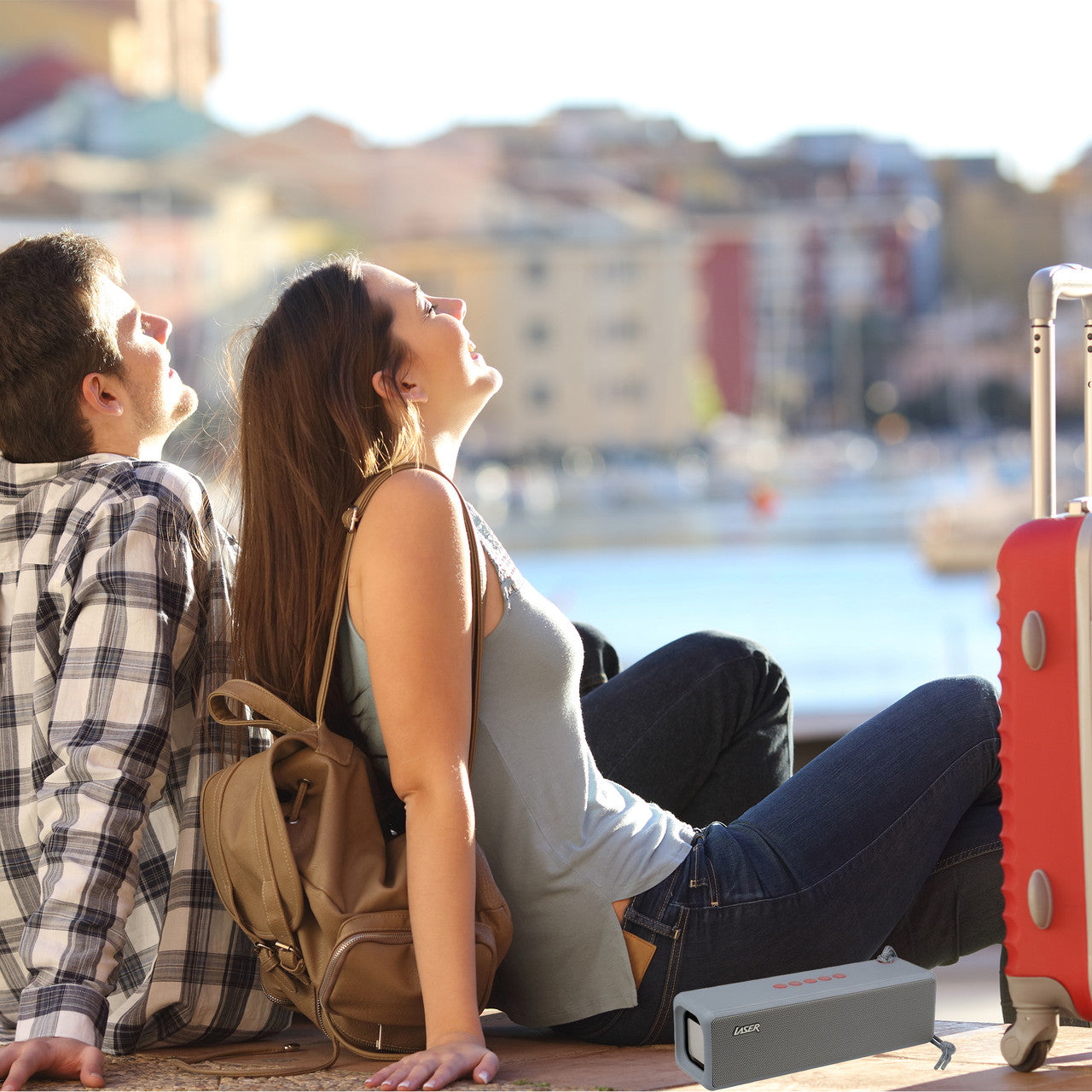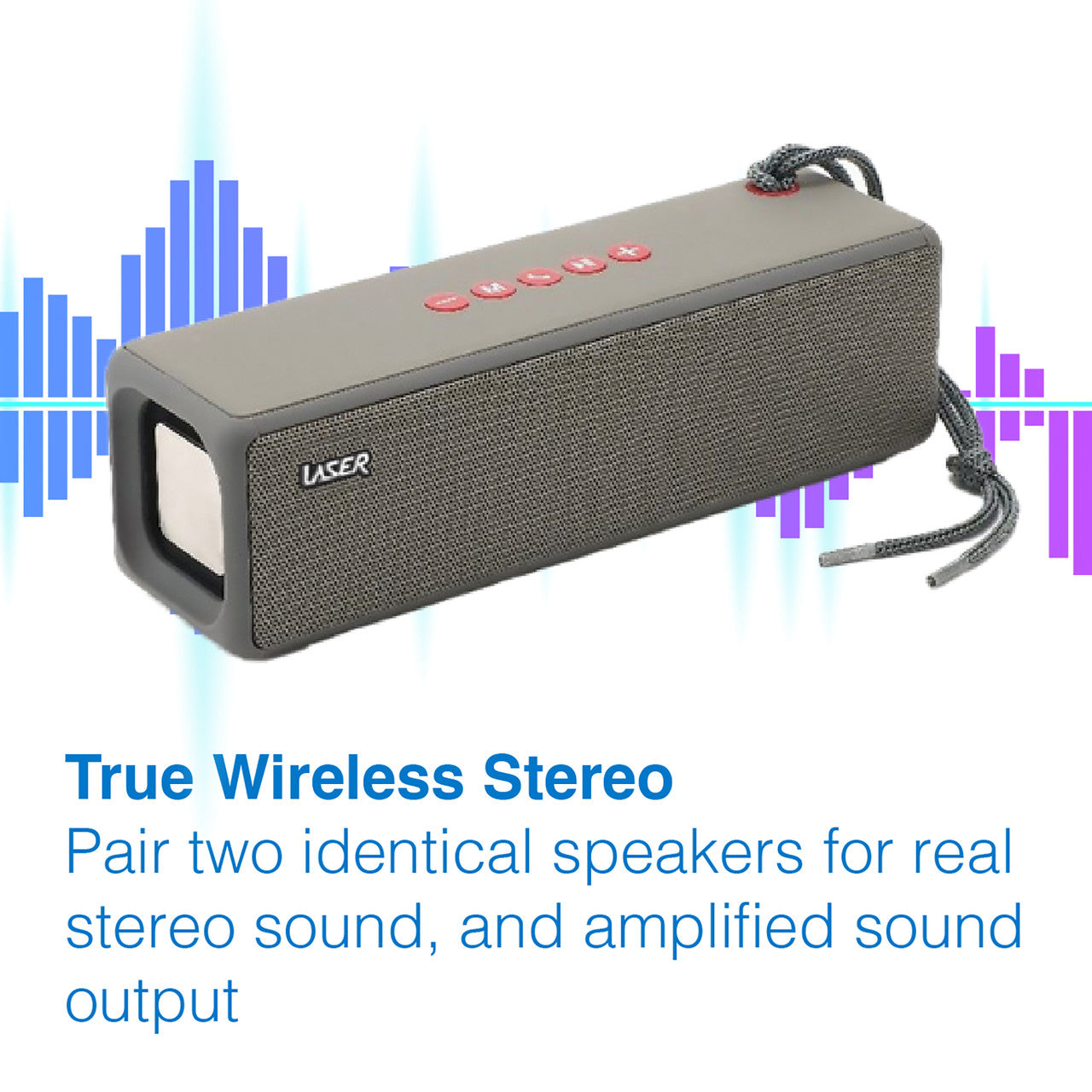 This Laser Bluetooth TWS Bar Speaker in Grey is the perfect companion for those who love to take their music on the go, without compromising on sound quality.