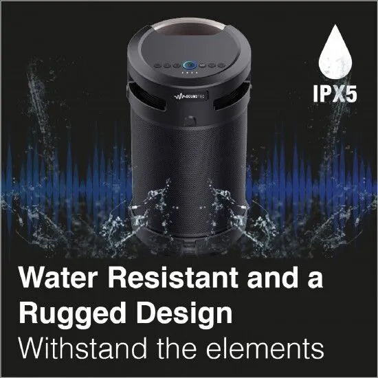 Connect to your favorite music sources effortlessly. The SoundTec Party Blaster offers various connectivity options, including Bluetooth for wireless streaming, USB for direct playback, Aux for wired connections, and even a microphone input for karaoke or announcements.